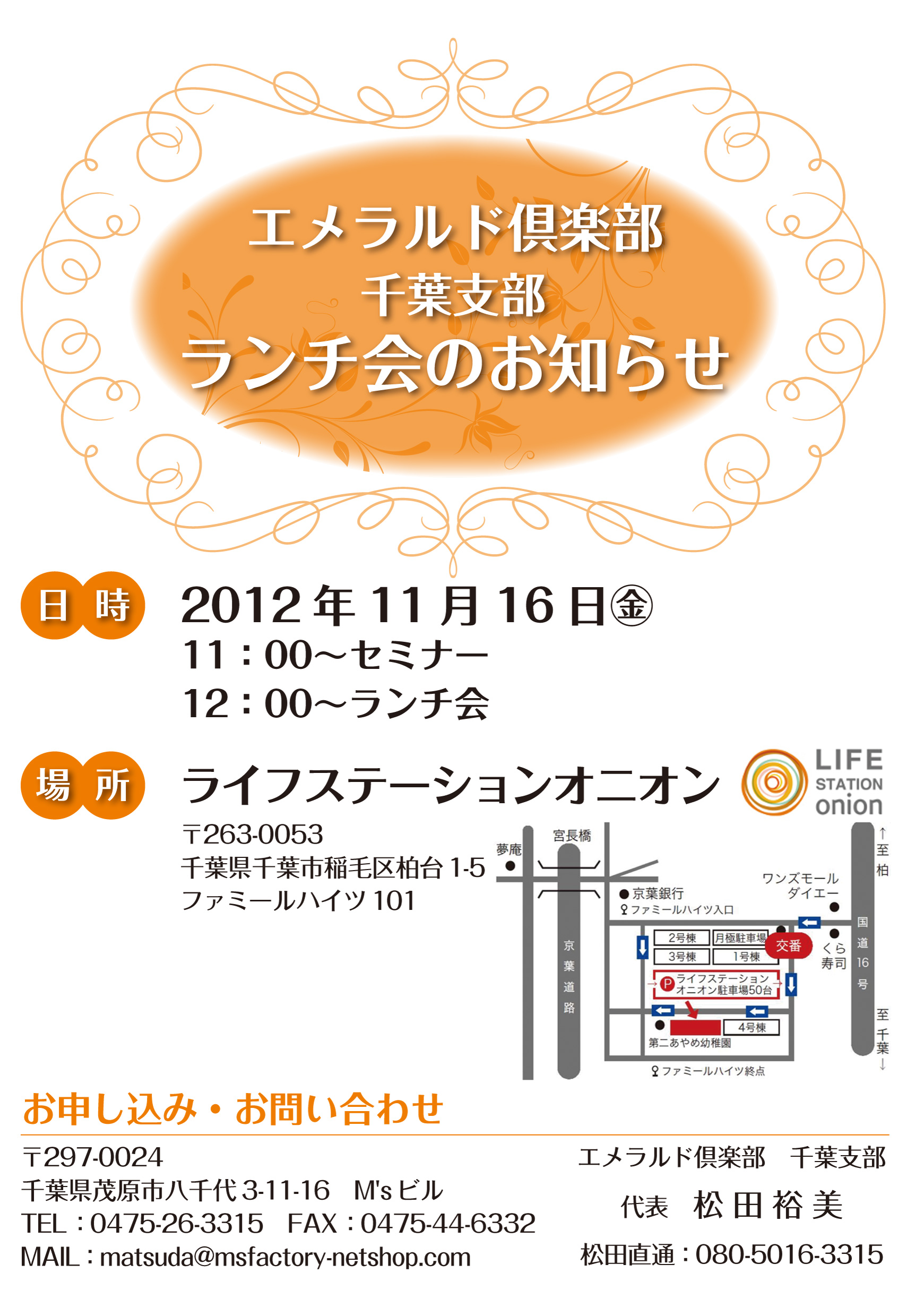 【千葉支部】エメラルドランチ会←クリック!! ランチ会会場地図